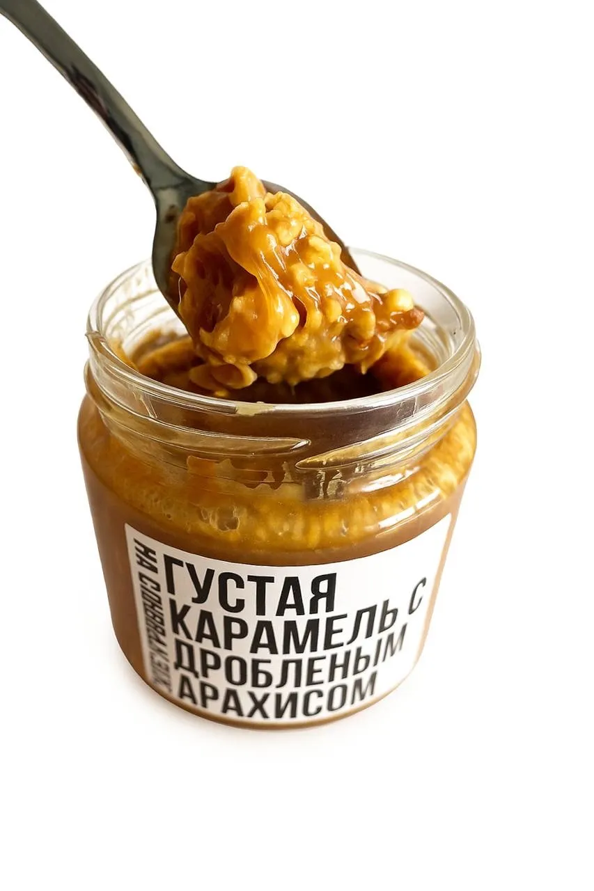 Соленая карамель ГУСТАЯ С ДРОБЛЕНЫМ АРАХИСОМ 200 гр. 33%